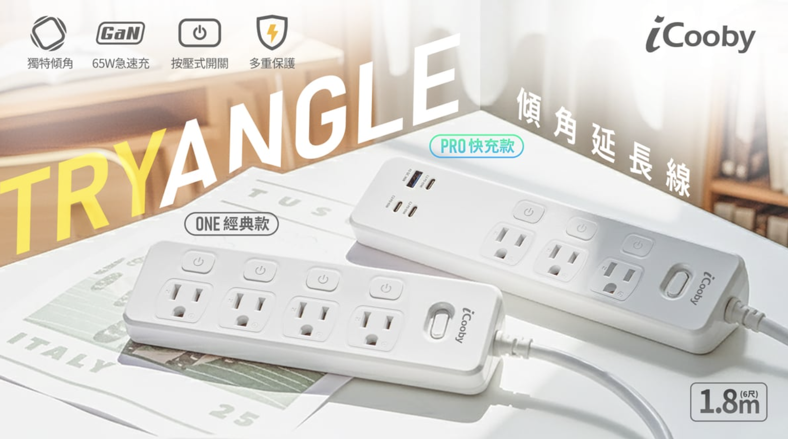 今天要來分享一款最近在嘖嘖募資上討論度很高的「收納系」居家充電神物——「iCooby 傾角延長線」!它完全打破了我對延長線死板的既定印象,不只是它特殊的三角形設計,更重要的是我最愛用的這款「傾角延長線 Pro」竟然內建了「65W 氮化鎵快充」設計~如果跟我一樣是居家收納狂,超在乎桌面和角落的整齊度,這篇文章一定要看到最後!
